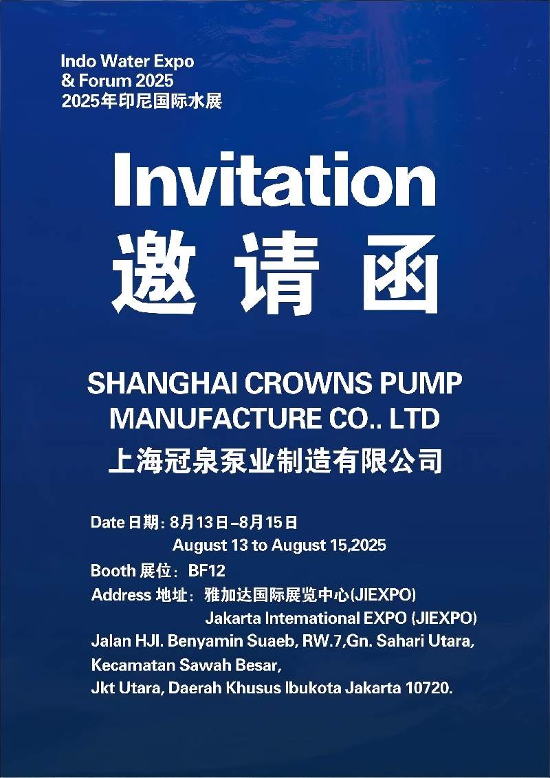 Indo Water 2025 Expo & Forum ซึ่งเป็นงานเทคโนโลยีน้ำและน้ำเสียนานาชาติอันดับ 1 ของอินโดนีเซีย ครั้งที่ 19 จะจัดขึ้นระหว่างวันที่ 13 สิงหาคม ถึง 15 สิงหาคม 2568 กิจกรรมนี้จะเชื่อมโยงผู้นำในอุตสาหกรรม นักนวัตกรรม และผู้เชี่ยวชาญเพื่อแสดงเทคโนโลยีและโซลูชันล่าสุดในการจัดการทรัพยากรน้ำ การระบายน้ำทิ้ง น้ำเสียทางอุตสาหกรรม การทำให้บริสุทธิ์ การชลประทาน และอื่นๆ อีกมากมาย ในฐานะผู้เล่นที่ทุ่มเทในปั๊มหอยโข่ง, ปั๊มดับเพลิง,ปั๊มจุ่มภาคการผลิต Guanquan Pump Industry รู้สึกตื่นเต้นที่ได้เป็นส่วนหนึ่งของการรวมตัวอันทรงเกียรตินี้ และเราขอเชิญคุณอย่างอบอุ่นมาเยี่ยมชมบูธของเรา!